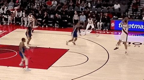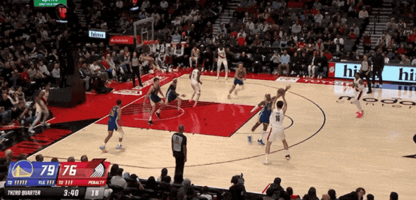 所謂“戈塔特掩護(hù)”,就是中鋒上提到高位,先給持球的隊(duì)友做第一次擋拆,擋住防守人,然后立刻順下到禁區(qū),進(jìn)行第二次擋拆,這一次擋住的是自己的對(duì)位者,防止他去協(xié)防護(hù)筐。通過(guò)兩次擋拆,就清空出了一條由外向內(nèi)的攻擊路線。
